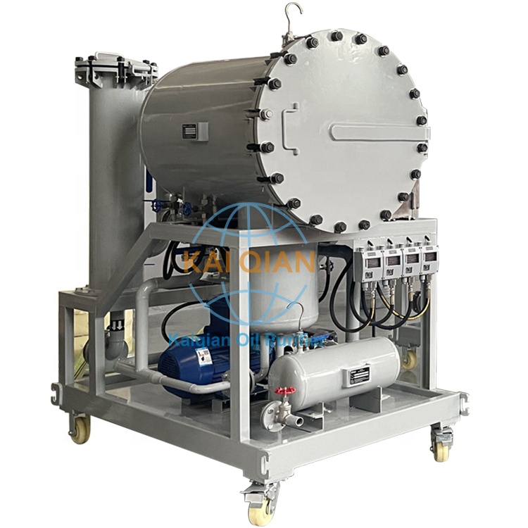 1.1.廣泛使用于各種行業的燃油脫除雜質及油水分離設備裝置,能實現在線運行的油水分離的裝置。其基本的工作原理是使含水油液先通過高效油水聚結濾材使油水混合物中細小水滴快速聚結增大粒徑,使油滴快速上浮,水滴快速下沉,再通過次級罐體中特殊親油疏水濾芯對初級分離過的含微量水的油液進一步細濾使油與水進一步快速的分離。從而使出口油含水量降至規定范圍,經過過濾脫水后的油液,油液中水含量可達到5ppm。產品分固定式大流量型和便攜式經濟型兩種,以適應不同用戶需求。