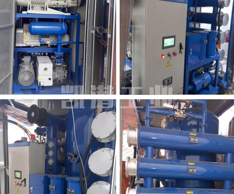 110KV-330KV的變壓器絕緣油凈化處理可以達到乙炔值水分為零,無雜質污染,提升油的使用周期,也適用于高等級新油,進口油的深度處理,本機增加了羅茨泵增壓系統(tǒng),二次高真空分離系統(tǒng),三維立體閃急快速蒸發(fā)系統(tǒng),其脫水、脫氣、脫乙炔、、除酸值、脫除游離炭等,處理后油極限耐壓值更高,既可作濾油使用。也可作為獨立真空源對變壓器設備進行真空干燥注油功能。